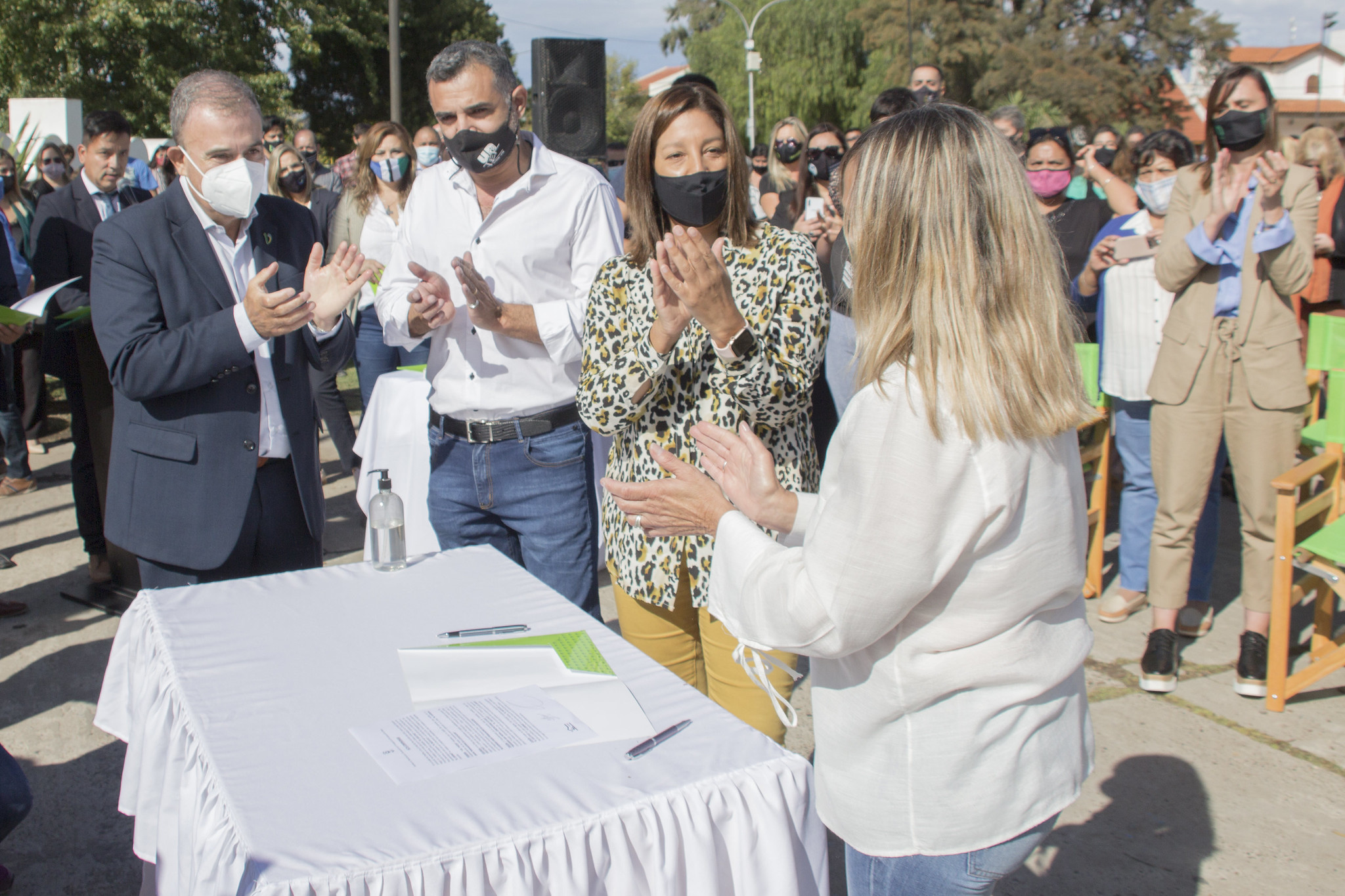 Acompañada por el intendente Pedro Pesatti, la Mandataria llevó adelante estas firmas, que en el caso de las unidades habitacionales tendrán una inversión superior a los $843.000.000, mientras que para las obras de infraestructura, que en esta primera etapa serán en el barrio Los Eucaliptos 2, el monto será de $25.622.261.